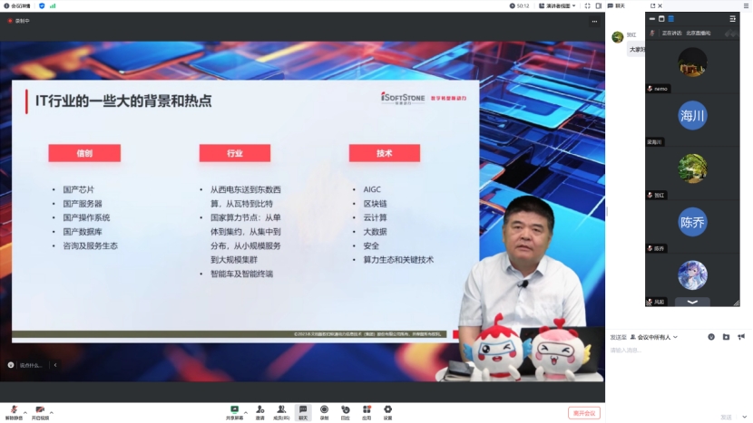 5月14日晚,计算机技术协会举办“智能进化,领潮未来”软件行业动态交流讲坛,本次活动邀请了软通动力高级副总裁车忠良先生作线上技术报告。本次技术报告主要由“技术创新和趋势”,“行业案例研究”,“技术挑战和解决方案”,“职业发展和招聘机会”四部分组成。